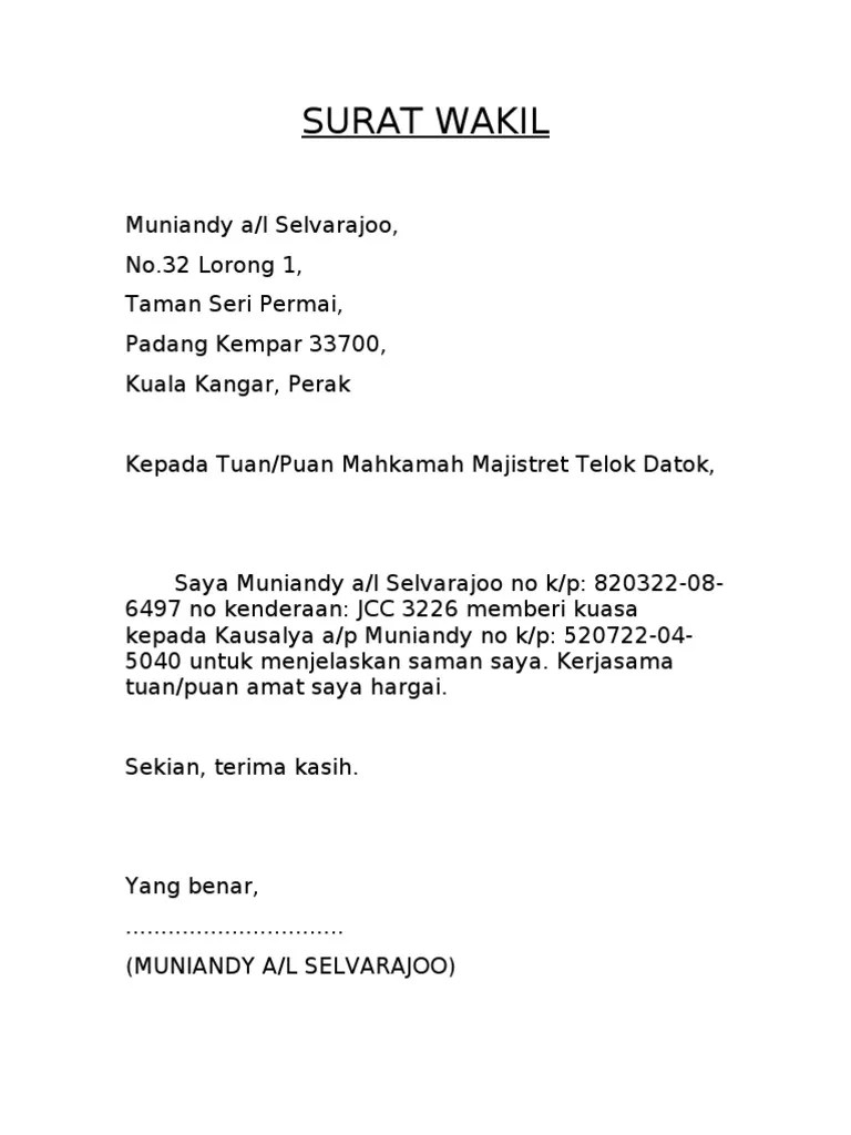 Contoh Surat Kuasa Wakil Malaysia Kumpulan Contoh Surat Dan Soal Terlengkap